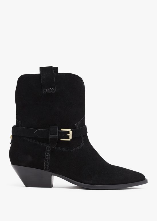 Esmena Black Suede Western Ankle Boots -...