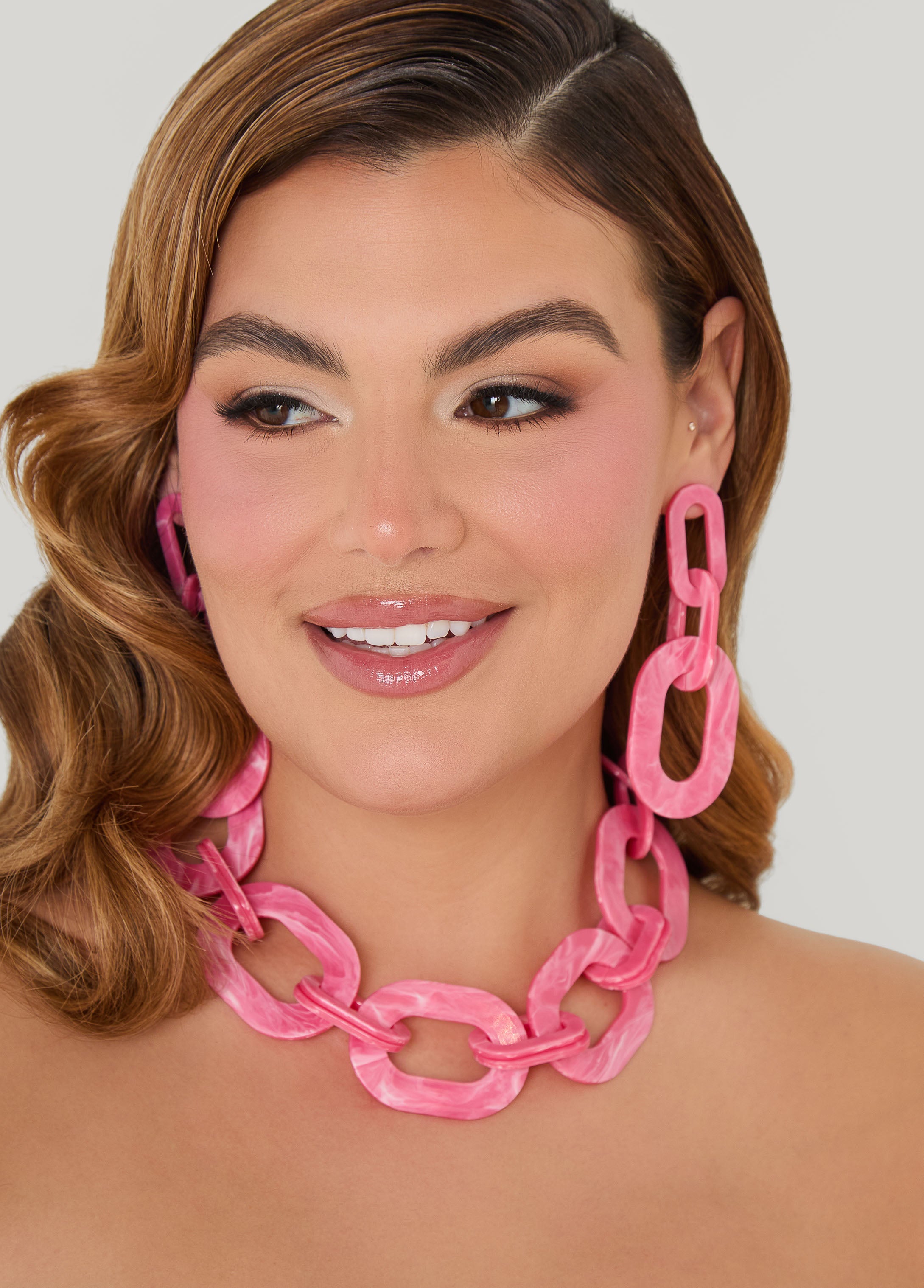 Plus Size Marbled Chain Link Necklace Se...